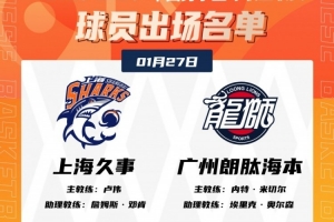 体育资讯1月27日讯 今晚19:35,上海将在主场迎战广州,赛前大名单出炉。