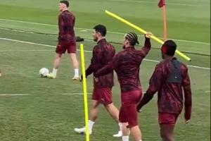 体育资讯01月28日讯 近日,效力于加拉塔萨雷的萨内一段训练视频引发外网热议,视频中萨内将尖锐的训练杆当做标枪,向前掷出戏弄队友库图库。