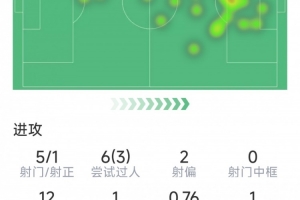 埃基蒂克本场数据:传射建功,5射1正,1次错失良机,2次关键传球