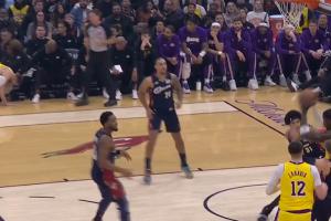 又一个!詹姆斯篮下拉拽泰森 再度被吹进攻犯规