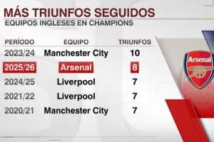 英超球队欧冠连胜纪录榜:曼城10连胜居首,枪手8连胜次席
