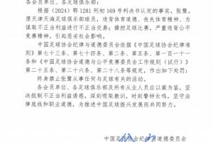 足协官方:张鹭进行不正当交易,操控足球比赛,被终身禁赛