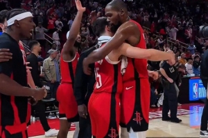 小伙子你是功臣!杜兰特申京赛后拍谢泼德的脑袋致意 范乔丹转发