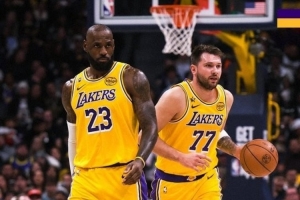 东詹合体带队赢球!湖人发布赢球海报:东契奇+詹姆斯登上封面