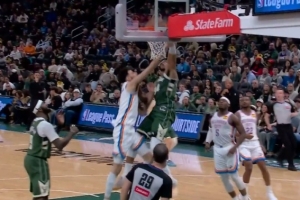 拿你撒气!字母哥转身到篮下暴力隔扣霍姆格伦