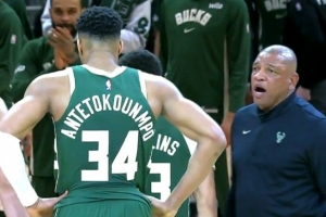 雄鹿落后20分 里弗斯欲和字母哥沟通 后者走过直接选择无视