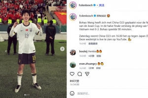 邓伯什官方写道:王博豪和中国U23队已晋级亚洲杯决赛,在半决赛中,中国队以3-0战胜越南队,王博豪出战90分钟。本周六下午4点(荷兰当地时间),中国U23队将迎战日本U23队。