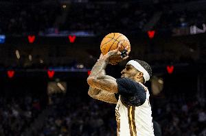 场均一个表演时刻!詹姆斯飞身抢断 冲过两人堵截滑翔双手暴扣