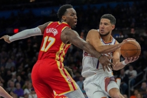 老鹰本赛季战绩21胜25负,场均得117.6分,场均失119.1分。上场比赛,老鹰客场124-122险胜灰熊,球队结束4连败。杰伦·约翰逊32分15篮板8助攻,奥耶卡·奥孔武18分9篮板,麦科勒姆15分6助攻,卢克·肯纳德18分4篮板。在交易特雷·杨后,老鹰的战绩并没有明显好转,被推上“球队老大”位置的杰伦·约翰逊在经历阵痛后,最近两场比赛表现有了明显提升,场均30分15.5篮板7助攻远超赛季平均。从往绩看,从2014年3月25日之后,老鹰在主场保持对太阳的全胜战绩。本场恩法利·丹特、波尔津吉斯和扎卡里·里萨谢确定将缺席比赛。