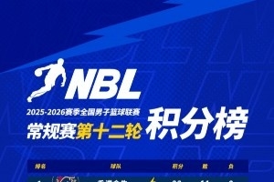 2025-2026赛季NBL常规赛第十二轮比赛于1月22日全部战罢。
