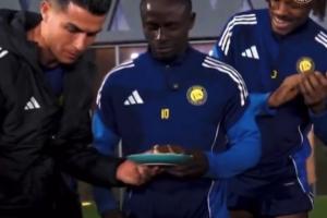 凯旋!胜利全队庆贺马内非洲杯夺冠,C罗为他切蛋糕+调皮摸头