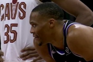 岁月不饶人!威少空篮起飞但空中犹豫 最终脱手上丢