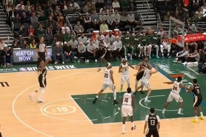 你到底咋了?字母哥对抗金鸡独立后仰投出空气球