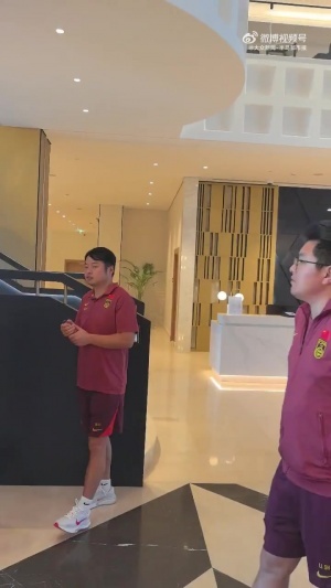 加油!距离决赛还有四个多小时,中国男足U23从酒店启程前往球场