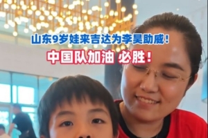 9岁男孩生日奔赴吉达为李昊加油,妈妈笑称回去就要期末考试