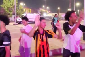 前往现场观赛的球迷“Mr-Q”在社媒晒出了一段视频,视频中,几名沙特当地的球迷朝中国球迷怪叫,并且比出0-4的手势进行嘲讽。