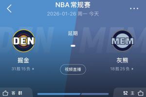 Shams:原定4:30进行的灰熊主场迎战掘金,因天气原因推迟