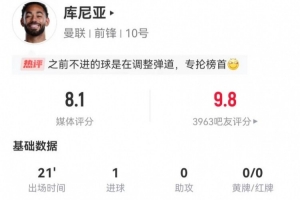 库尼亚替补数据:1射进1球 4对抗3成功+2造犯规 获评8.1分