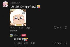 甜蜜女友评论徐彬"大胆闯吧,我一直在你身后" 2人IP都在英国