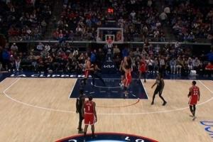 时间刚刚好!桑德斯突破罚球线稳稳命中压哨后仰跳投