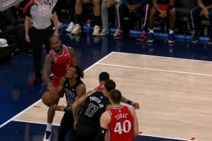 一点都不松懈!克拉克斯顿吃饼试图上篮 小卡精准手刀切球抢断!